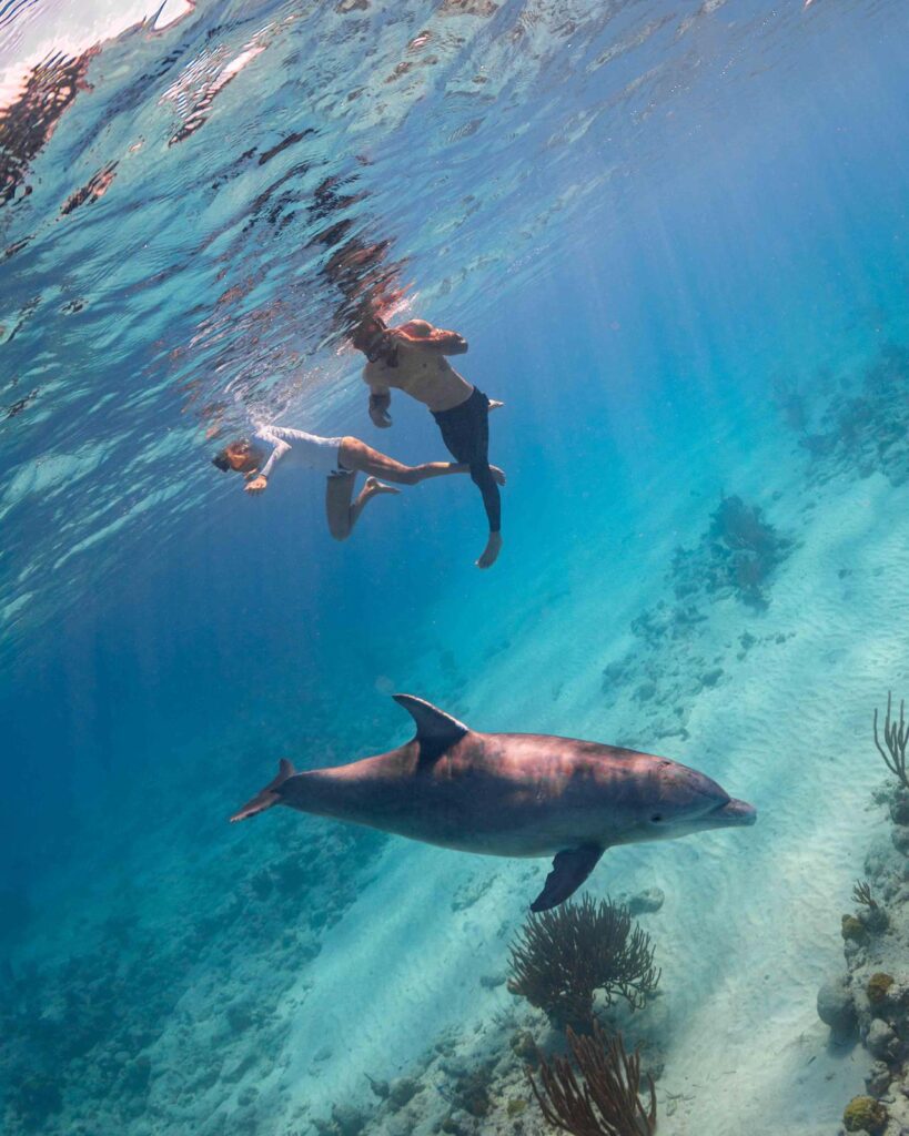 The sun was coming out a little bit more and it felt a little warmer outside. We went to a shallow spot to make another one of Andre’s visions come to life. It felt like summer underwater, the water was a little bit warmer due to a shallower spot, and it was so pretty; an underwater garden. After a few attempts, Andre started screaming “dive dive dive”, I hesitated for half a second when I saw a dolphin swim right underneath David and I. Sometimes dolphins want to play, and other times they want nothing to do with us; this was one of those times. We continued to get our shoot and headed back to the marina soaking up the sun.