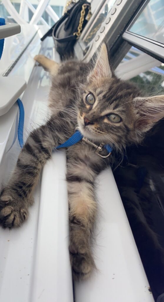 And on another positive note, we had taken my foster-fail kitten, Mako, with us to see how he would adjust to boat life since I will be bringing him on my sailboat with me. He was relaxed the whole time, oblivious to the chaos surrounding him, and was a little light in the day for us and everyone helping us.