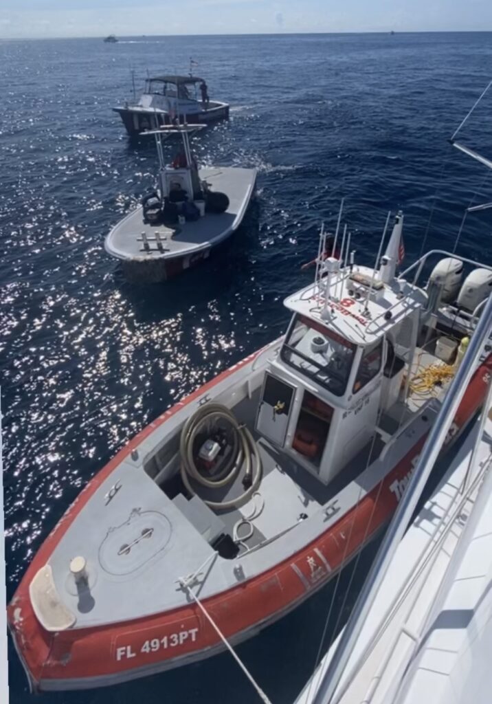 We turned the starboard engine off, hoping to stop or slow the water coming in. It stopped for maybe a few seconds, then started flooding in again. I slowly headed towards the port and called Captain Jay, who takes care of our boat. I went back down to look through the engine room to see the extent of the water coming in; I was in shock… praying it didn’t get any higher. After I was back at the helm, I slowly started losing my steering. I told my papa and that was the moment we called tow. We had no idea where the water was coming from, we couldn’t get the flow down, the bilges couldn’t keep up, and I didn’t decide to call tow until my steering went out. Looking back, that was one of my biggest mistakes. I should have called tow and the coast guard immediately.