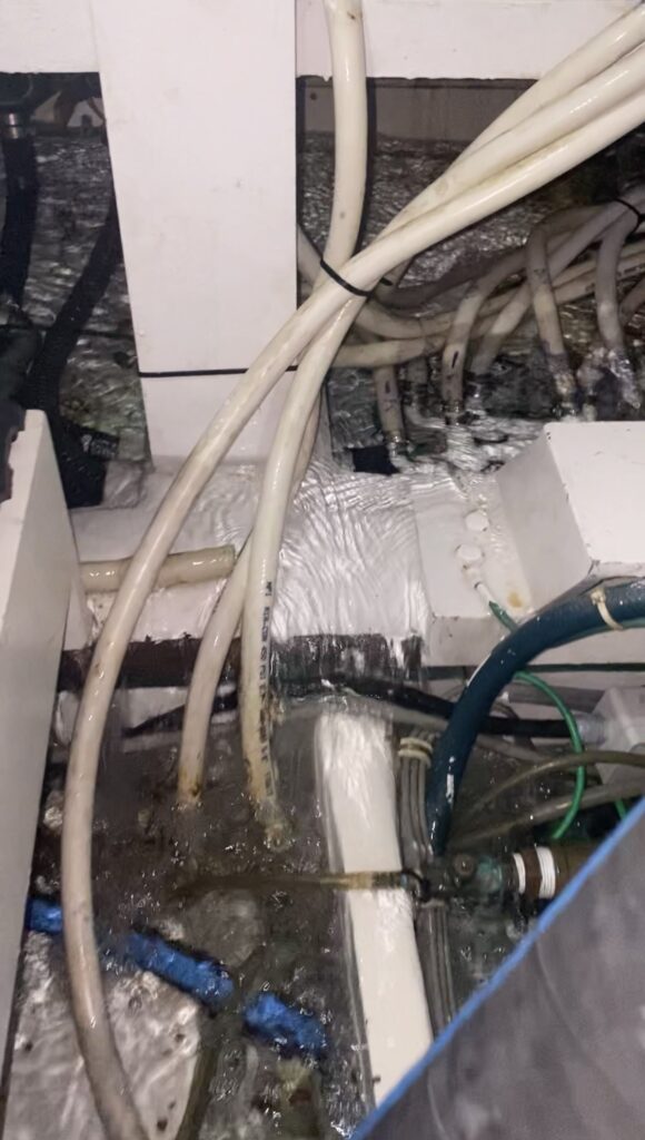 Speechless and trembling I ran down the ladder and lifted the engine room hatch. I didn’t even have to go down the ladder or grab my ear muffs; all I saw was water rushing under my starboard engine like a river. An image I will never be able to get out of my mind. Looking at it for half a second, I ran back to the flybridge and while turning the boat, told my mom to go let my dad and papa to go to the engine room immediately.