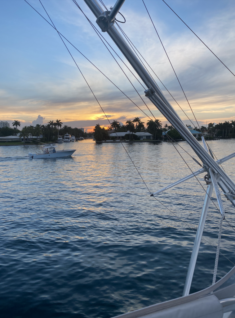 We planned to leave at 6:30 when the sun was beginning to rise. The past few years my dad hasn’t driven the boat as much as I was learning and became captain. Since this was possibly my last trip in this boat and I am confident in this boat, we both wanted him to take back over. I did the lines and he pulled out right on time. We watched the sunrise as we cruised through the intracoastal. Leaving the port and speeding up is one of my favorite things, especially when the ocean was as flat as it was that day. There was no wind and we were excited to spend half the day fishing and enjoying the whole day on the water before anchoring in Andros.