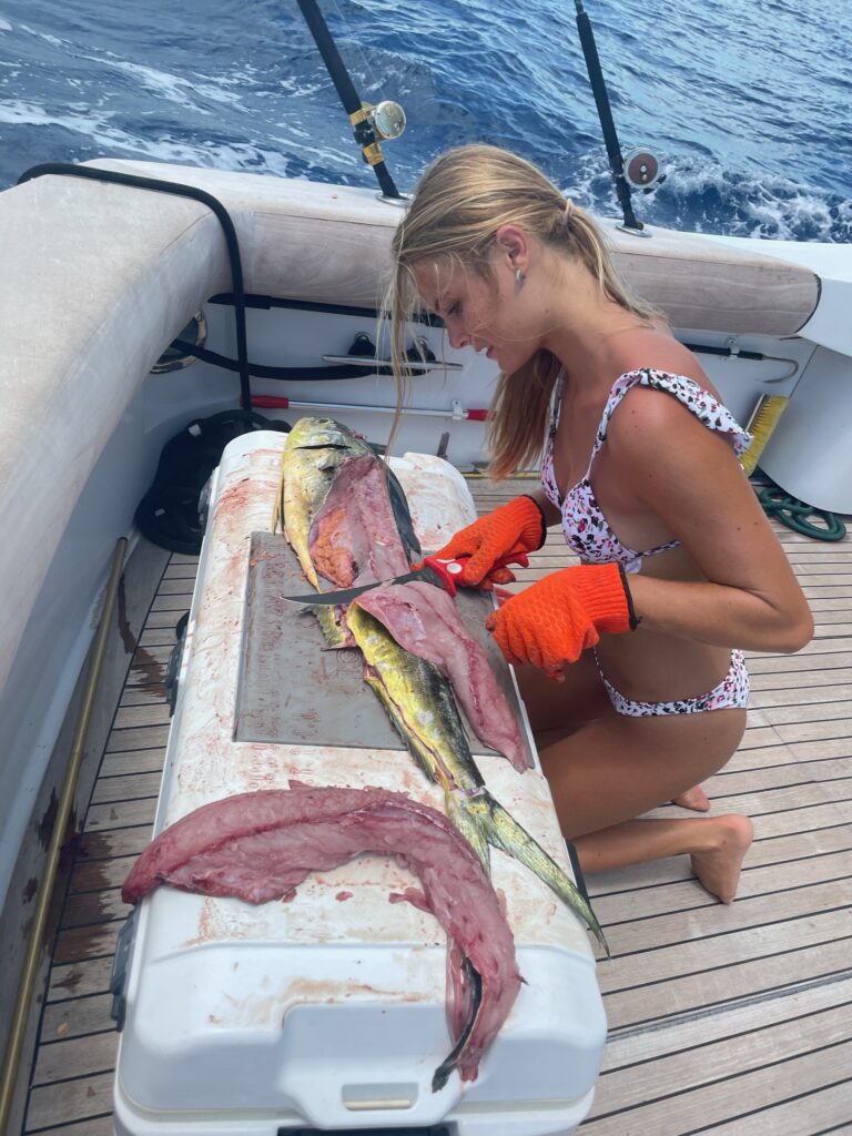 The day we left, we trolled for a few hours before hitting the flats. Right after I was told we wouldn’t catch a fish where we were, we got a mahi-mahi on the line, which is my favorite fish, and I was ecstatic and excited for fish tacos that night.