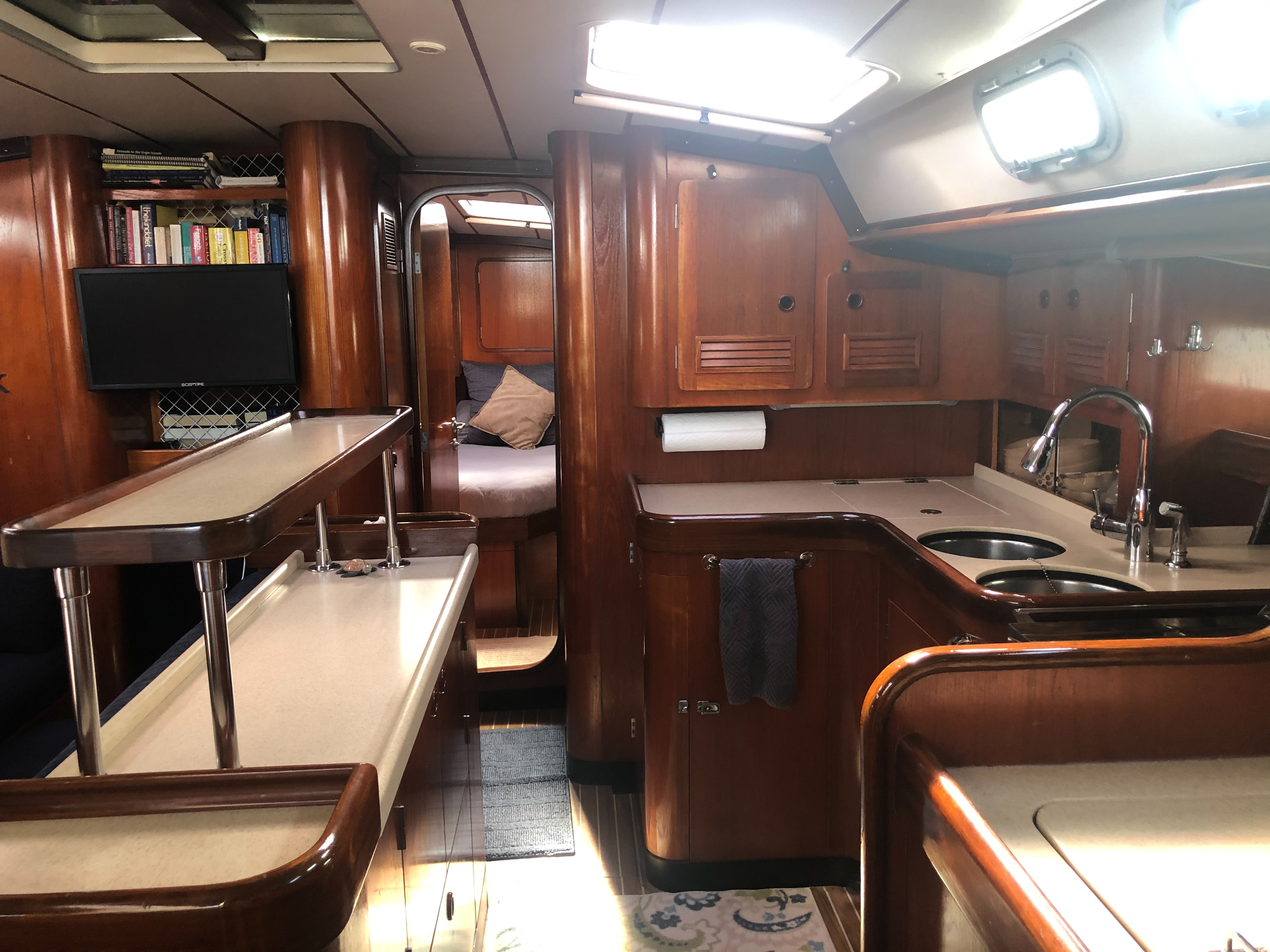 Working with David on his 1998 Beneteau, I learned how sturdy the older models were and I loved the layout and storage space. They make you feel at home and the open layout makes you feel like you’re in a much larger space than you actually are. I also loved the kitchen we had that took the whole length of the salon. The bedroom layout was also something I really loved. There was a perfect hatch above the master stateroom bed, giving plenty of airflow at night, and the guest bedrooms were perfect for charter guests, the only thing I wished was that both bedrooms had their own en-suite bathroom.
