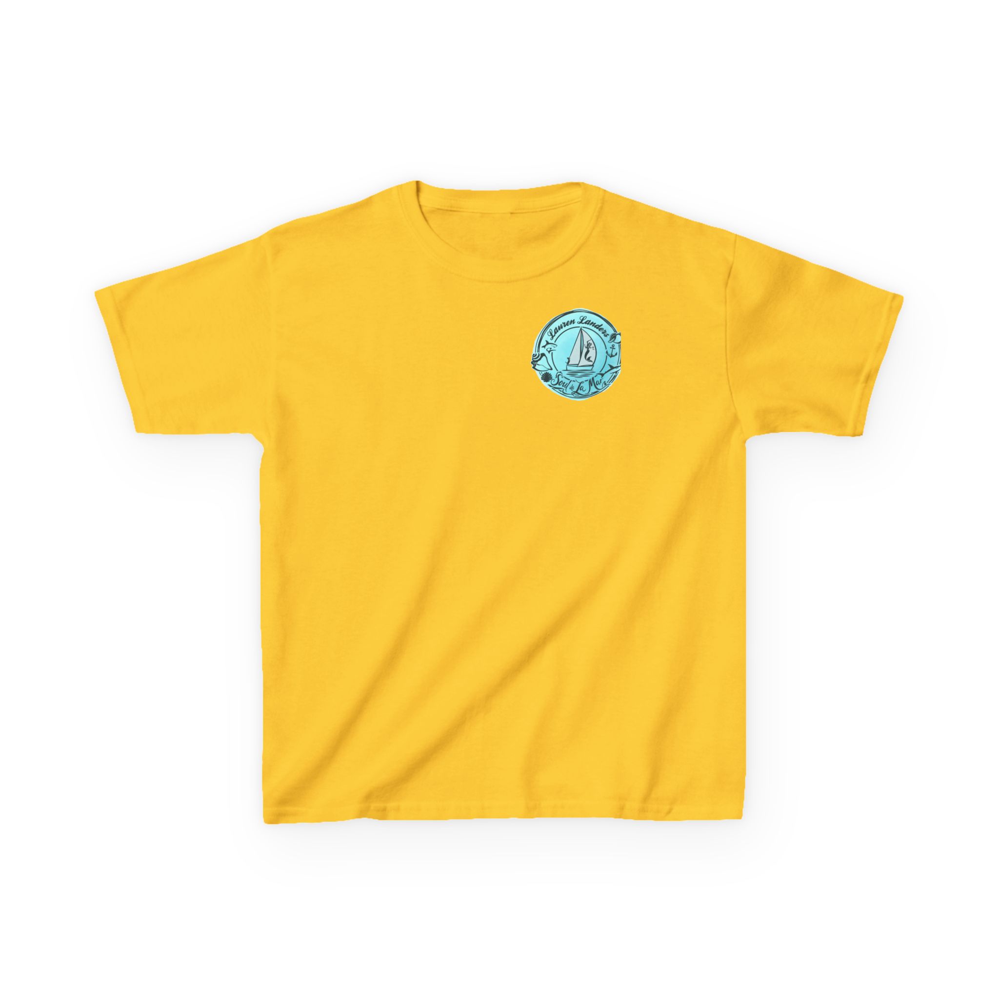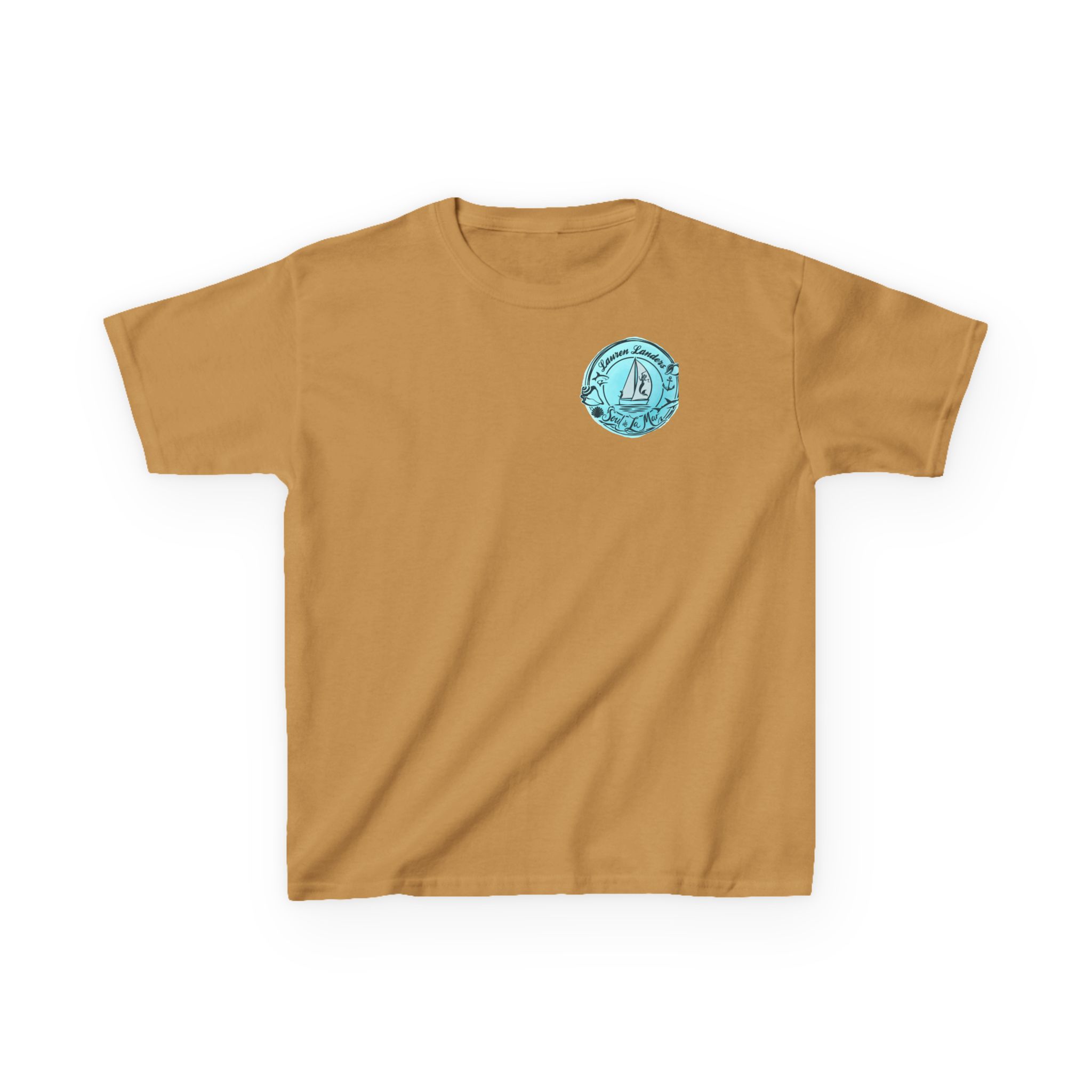 The kids heavy cotton tee is perfect for everyday use. The fabric is 100% cotton for solid colors. Polyester is included for heather-color variants. These fabrics are prime materials for printing. The shoulders have twill tape for improved durability. The collar is curl resistant due to ribbed knitting. There are no seams along the sides.
