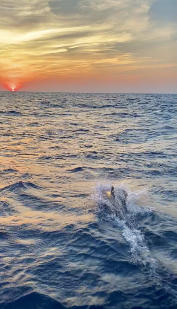 For the next 24 hours, we were going by Cape Hatteras, which was the favorite part of my sail. I was often taking the 12 am – 3 am shift and 6 am – 8 am overnight shifts. On this shift I took 3 am-6 am. As the sun started breaking out around 5 am, I saw a fin and then a dolphin jump. We were completely under sail with no engine and had dolphins jumping at our bow before sunrise. Less than 30 minutes later with the sun rising, we had some more dolphins at our bow. It is always so beautiful to see and reminds me why I love being on the ocean more than anything else.