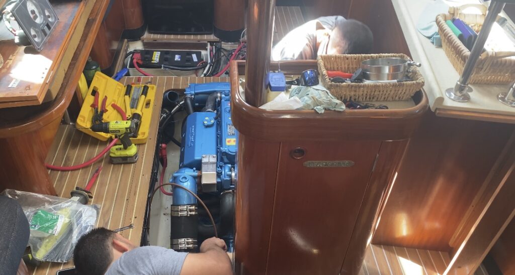 This was devastating, but my goal the entire time was to be ready for my friends coming for New Years Eve. A few weeks later, the mechanics determined the engine had thrown a rod. The owner’s plan was to rebuild, however, after talking with a few mechanically inclined friends, I decided to replace the engine. I was changing the brand of the engine, and it took a few months to figure out what was compatible and what was even in stock. I am grateful to my friend Stefan, who took control of this and found me the best engine I could ask for. One of my primary concerns was having an engine that was not computerized so I would be able to fix most things that break. I ended up with a Nanni 4.115 and have been happy with it thus far (cruising at 8-9 knots, even upwind).